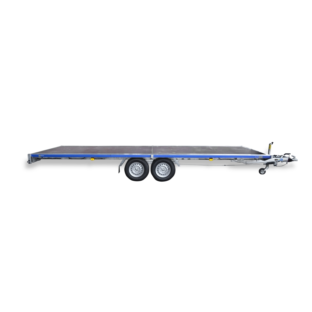 Točkovi ispod platoa omogućavaju maksimalno iskorišćenje čitave širine prikolice. Pošto se osovine i točkovi nalaze ispod same platforme, prikolica nema proširenja sa strane, što znači da celokupna širina platoa može biti iskorišćena za teret. Ovo prikolici daje fleksibilnost da se može koristi za transport različiti vrsta tereta, kao što su građevinski materijali, roba na paletama, radne mašine ili vozila. Točkovi su standardnog prečnika od 14“ , koji omogućuju povoljan otpor kotrljanja uz niske troškove održavanja