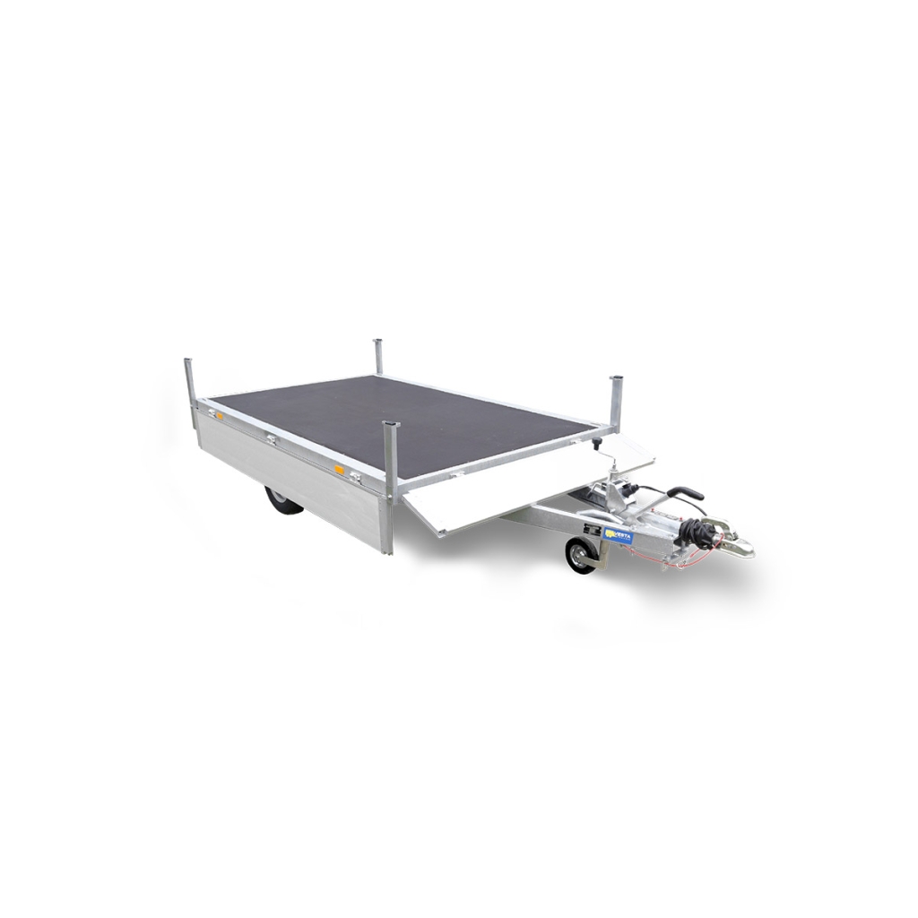 Tovarni sanduk: Tovarni sanduk se sastoji od stubova i stranica. Ugaoni stubovi su postavljeni tako da maksimalno iskoriste površinu platforme. Stubovi su demontažni i izrađeni od izdržljivog čeličnog profila, omogućavajući dodatnu nadogradnju, poput arnjeva. Stranice su izrađene od aluminijumskog kutijastog profila visine 300 mm, što smanjuje masu i pruža potrebnu čvrstoću. Sve stranice su otvarajuće, a robusne brave integrisane u profil omogućavaju lako i sigurno zatvaranje. Šarke su postavljene tako da omogućavaju jednostavnu demontažu stranica.