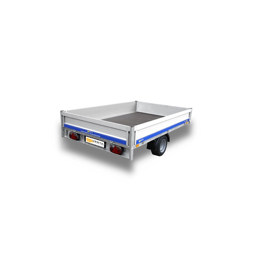 Pozicija točkova: Točkovi su postavljeni ispod prikolice, omogućavajući maksimalno iskorišćenje cele širine prikolice. Kako osovine i točkovi ne štrče, cela širina platforme dostupna je za teret, čineći prikolicu fleksibilnom za različite vrste transporta, poput građevinskog materijala, paletizovane robe, mašina ili vozila.
