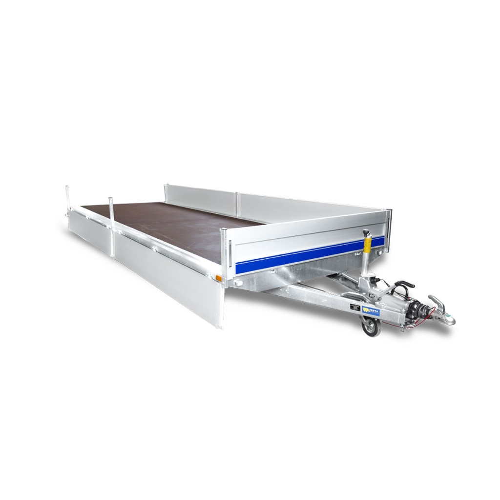Tovarni sanduk je izuetno prostran i sastavljen od stubova i stranica. Stubovi (6 kom) u uglovima i na sredini bokova tovarnog prostora, su postavljeni tako da ne smanjuju površinu tovarne platforme. Oni su demontažni, a napravljeni su od izdržljivog čeličnog profila, tako da mogu primiti na sebe i visoku nadogradnju u vidu arnjeva. Stranice su izrađene od kutijastog profila AL-legure visine 400mm, koja doprinosi manjoj masi i potrebnoj čvrstoći. Sve stranice se mogu otvarati. Robusne brave integrisane u profil doprinose estetici, a omogućuju lako i pouzdano zatvaranje stranica. Šarke su postavljene tako da omoguće laku demontažu stranica sa prikolice.