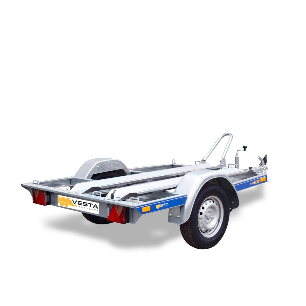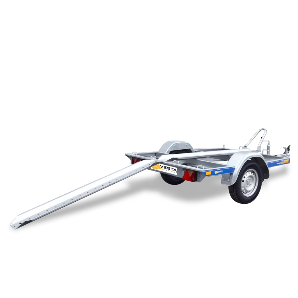 Prikolica je opremljena sa 4 alke i jednom sinom za fiksiranje motocikla i rampom za navoz, koja se prlikom trnsporta skladisti na sasiju prikolice.