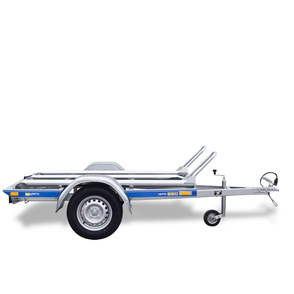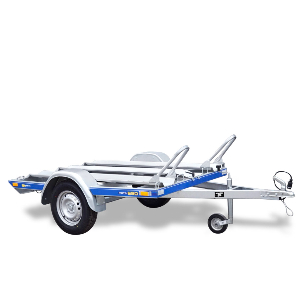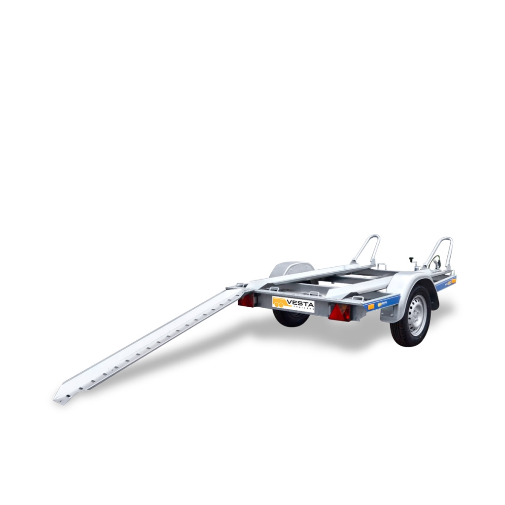 Prikolica je opremljena sa 4 alke i dve sine za fiksiranje motociala i rampom za navoz, koja se prlikom trnsporta skladisti na sasiju prikolice.