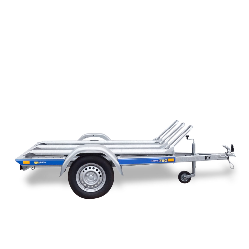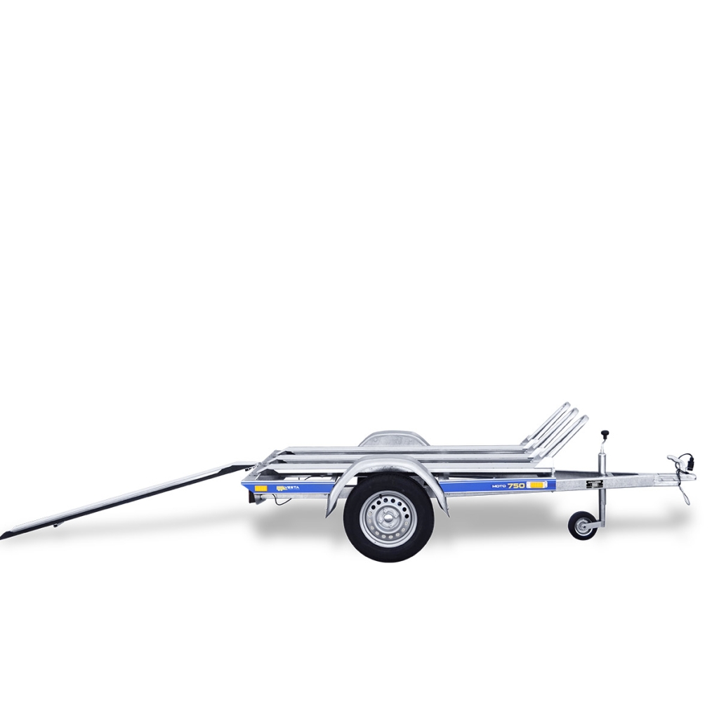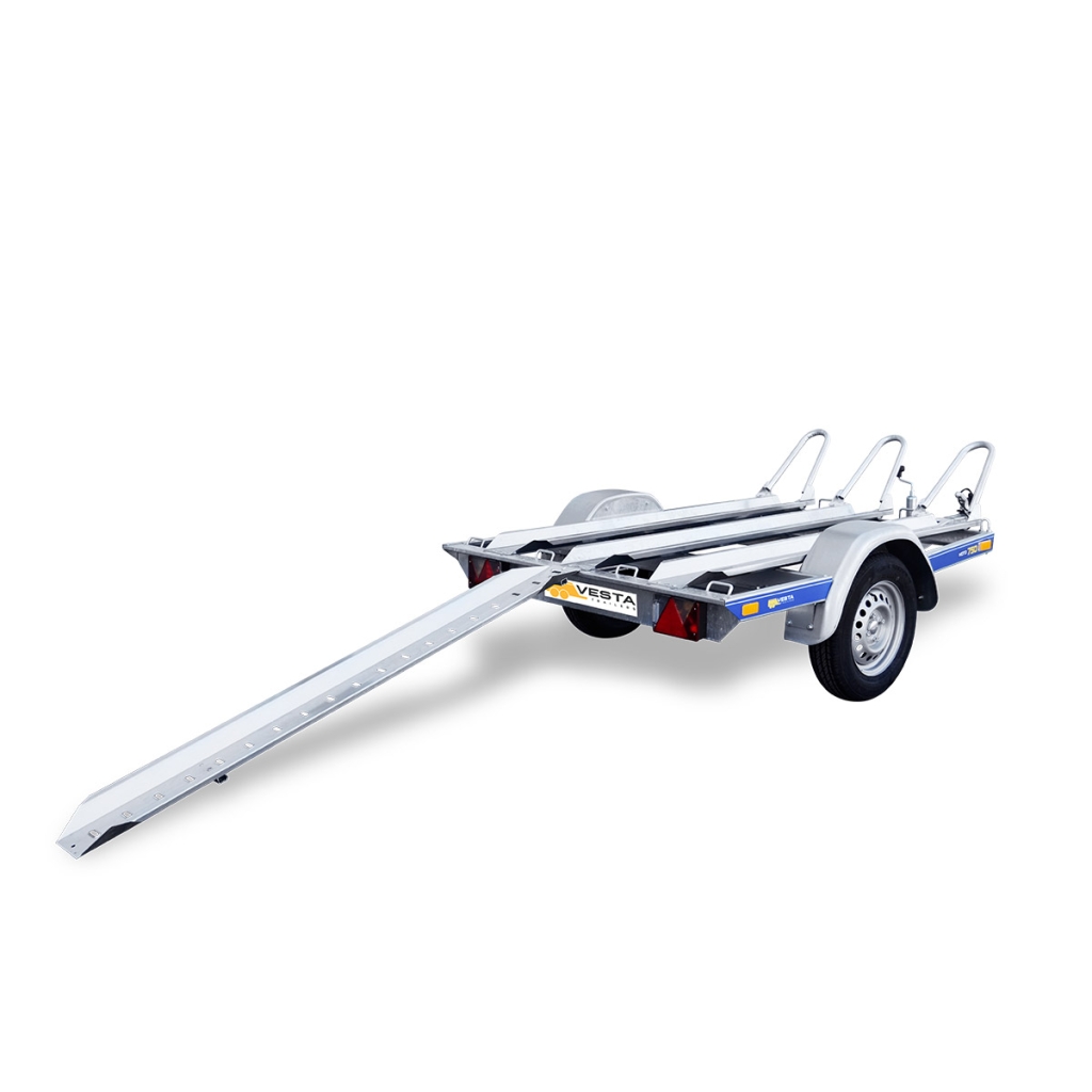 Prikolica je opremljena sa 4 alke i tri sine za fiksiranje motocikala i rampom za navoz, koja se prlikom trnsporta skladisti pod sasiju prikolice.