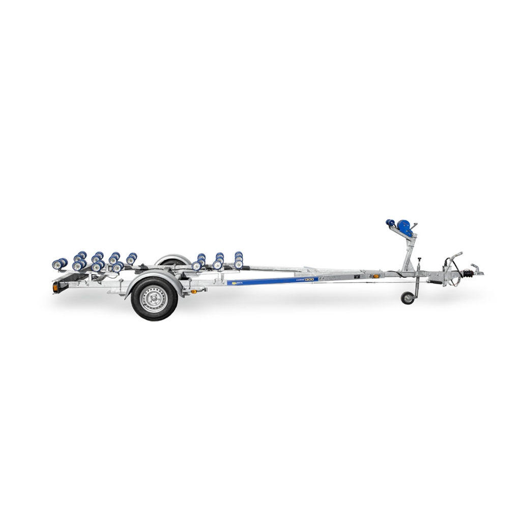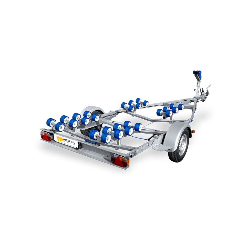 Nosači za valjke omogućavaju pogodno porinuće plovila i njegovo vraćanje u teškim, nepristupačnim delovima obale, gde nije moguće da prikolica dopre na dovoljnu dubinu. Dva prednja nosača sa duplim valjkastim modulima mogu se ugraditi bilo gde na poprečnu gredu, imaju podesivi ugao i podesivu visinu. Ovo vam omogućava da ih podesite na optimalan položaj za konture trupa plovila koje se transportuje. Dva zadnja oslonca sa četiri valjka mogu se postaviti na bilo kojoj tački na poprečni nosač, njihov pocinkovani nosač ima samopodešavajući ugao nagiba, a svaki par valjaka se samostalno prilagođava konturama plovila. Ovaj dizajn olakšava centriranje i pruža udobnu podršku za plovilo pri utovaru i porinuću pod velikim uglom.