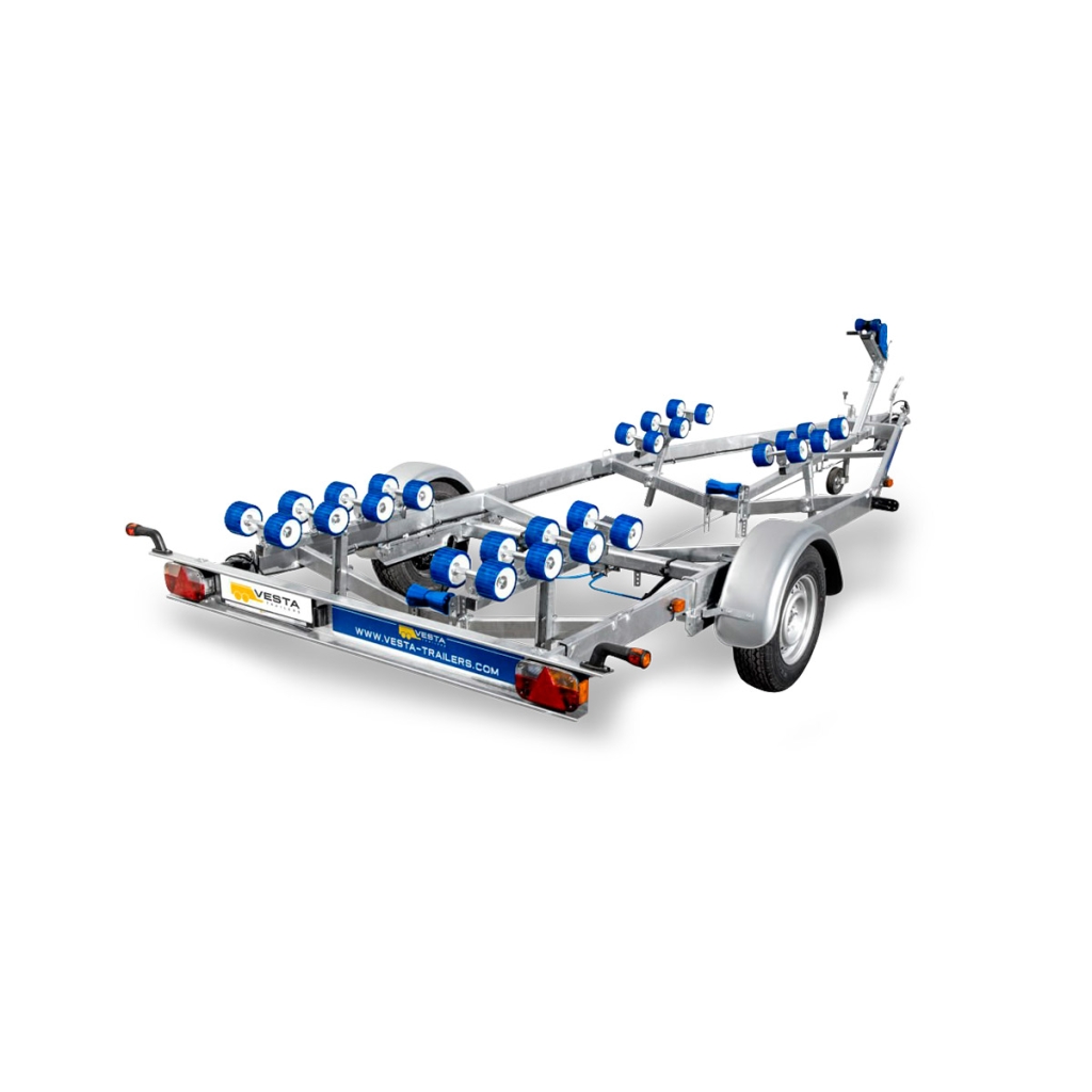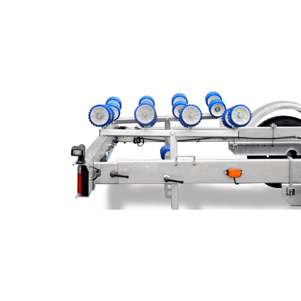 Nosači za valjke omogućavaju pogodno porinuće plovila i njegovo vraćanje u teškim, nepristupačnim delovima obale, gde nije moguće da prikolica dopre na dovoljnu dubinu. Dva prednja nosača sa duplim valjkastim modulima mogu se ugraditi bilo gde na poprečnu gredu, imaju podesivi ugao i podesivu visinu. Ovo vam omogućava da ih podesite na optimalan položaj za konture trupa plovila koje se transportuje. Dva zadnja oslonca sa osam valjaka mogu se postaviti na bilo kojoj tački na poprečni nosač, njihov pocinkovani nosač ima samopodešavajući ugao nagiba, a svaki par valjaka se samostalno prilagođava konturama plovila. Ovaj dizajn olakšava centriranje i pruža udobnu podršku za plovilo pri utovaru i porinuću pod velikim uglom.