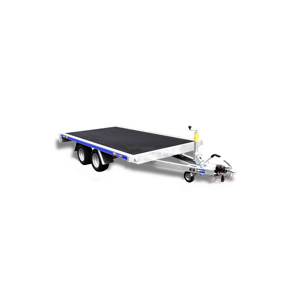 Točkovi ispod platoa omogućavaju maksimalno iskorišćenje čitave širine prikolice. Pošto se osovine i točkovi nalaze ispod same platforme, prikolica nema proširenja sa strane, što znači da celokupna širina platoa može biti iskorišćena za teret. Ovo prikolici daje fleksibilnost da se može koristi za transport različiti vrsta tereta, kao što su građevinski materijali, roba na paletama, radne mašine ili vozila.